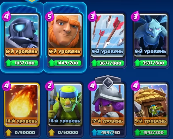 После достижения восьмой арены ваша колода будет выглядеть так: