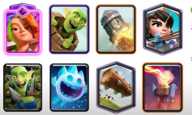 Суть колоды: Основной принцип спелл-бейта — заставить противника потратить мелкое заклинание, а затем выпустить гоблинскую бочку. Колода имеет отличную защиту: ракета против саппортов и мини-танков, адская башня против танков, валькирия и духи против мелких юнитов.