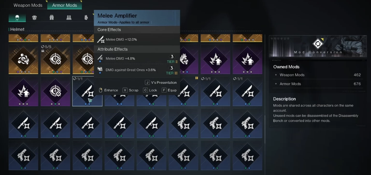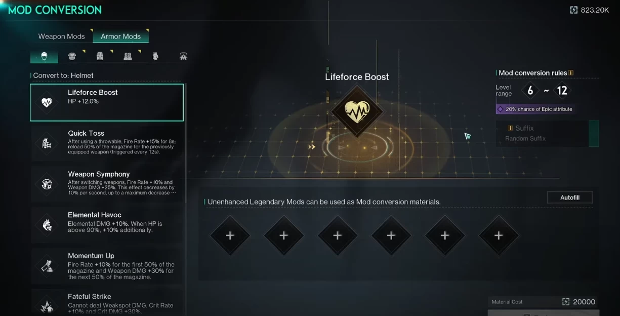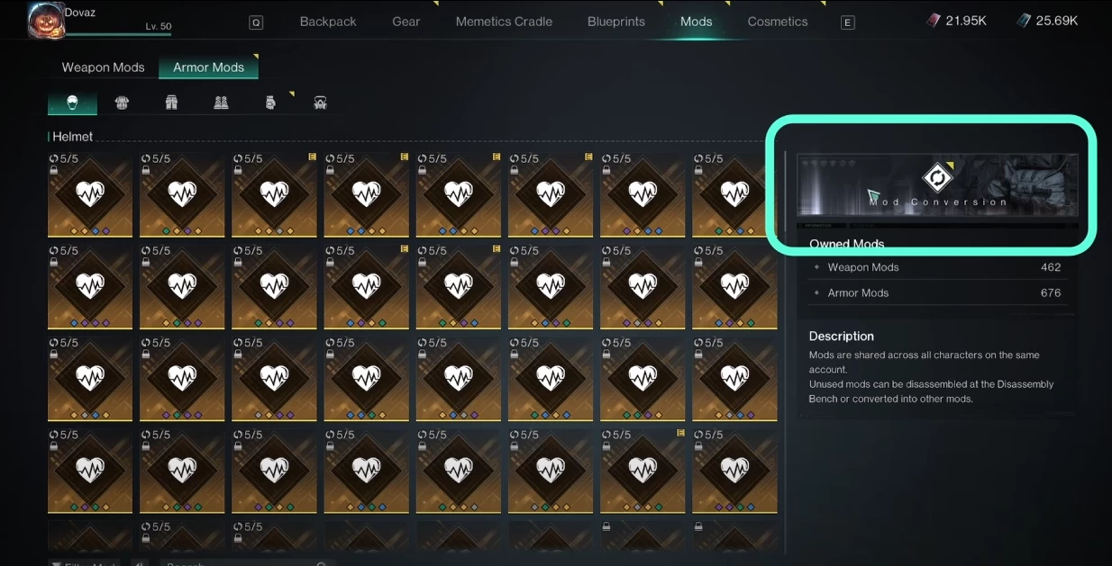 В какой-то момент у вас будет много ненужных модов, от которых можно избавиться при помощи раздела «Mod Conversion». С его помощью вы можете скрафтить новые модификаторы из старых. Для этого процесса можно использовать только те моды, которые вы не улучшали. Всего нужно потратить 6 модов.