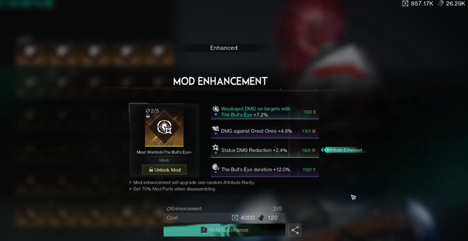 Если вы хотите, чтобы в новом модификаторе был нужный вам стат, важно выбрать 4 ненужных вам мода с этим статом. Тогда вы гарантированно получите его после крафта. Если подобная система кажется вам слишком сложной, в игре есть функция «авто-заполнение слотов» с возможностью выбрать, статы из какой категории вы хотите получить.