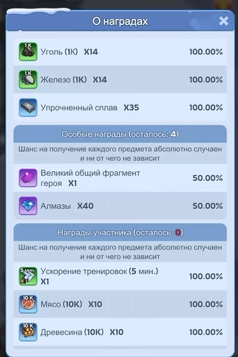 - Убийство полярных ужасов — за создание 10 экспедиций вы можете получить великий общий фрагмент героя и небольшое количество алмазов; шанс составляет 50%. В день ваша задача — устраивать 10 рейдов на полярных ужасов. Не забывайте, что вам необходимо 50 раз в день вступать в ралли для получения дополнительных наград.