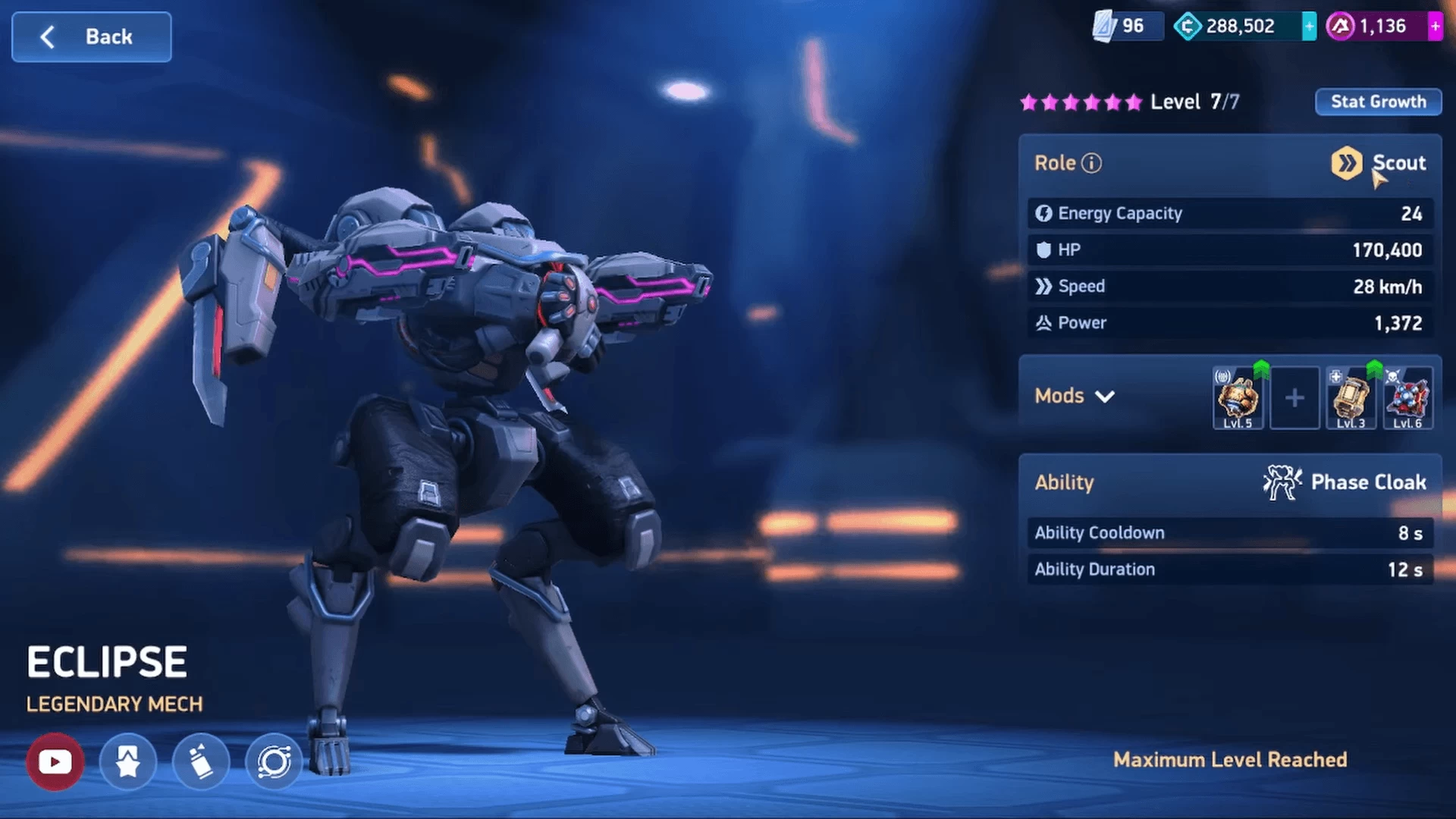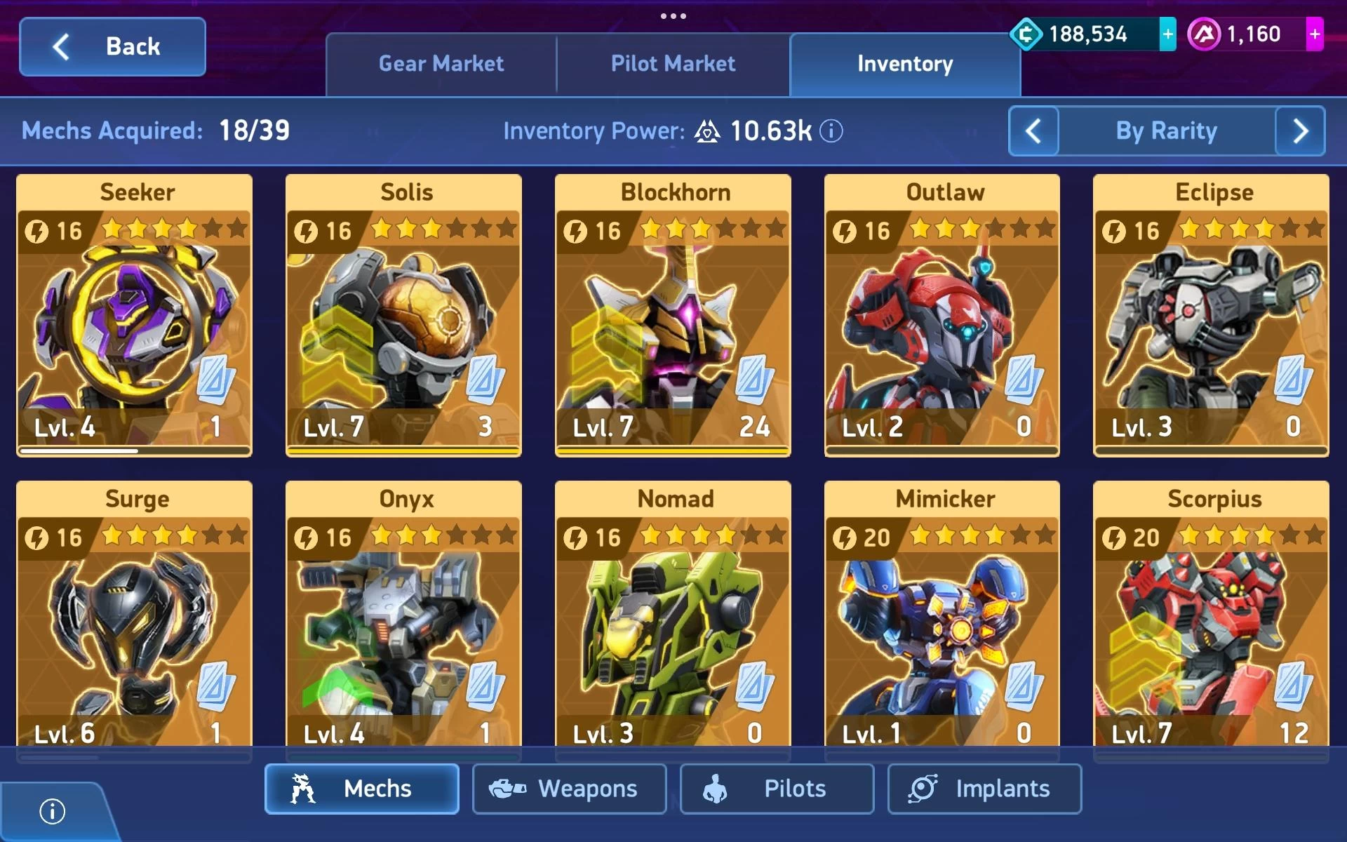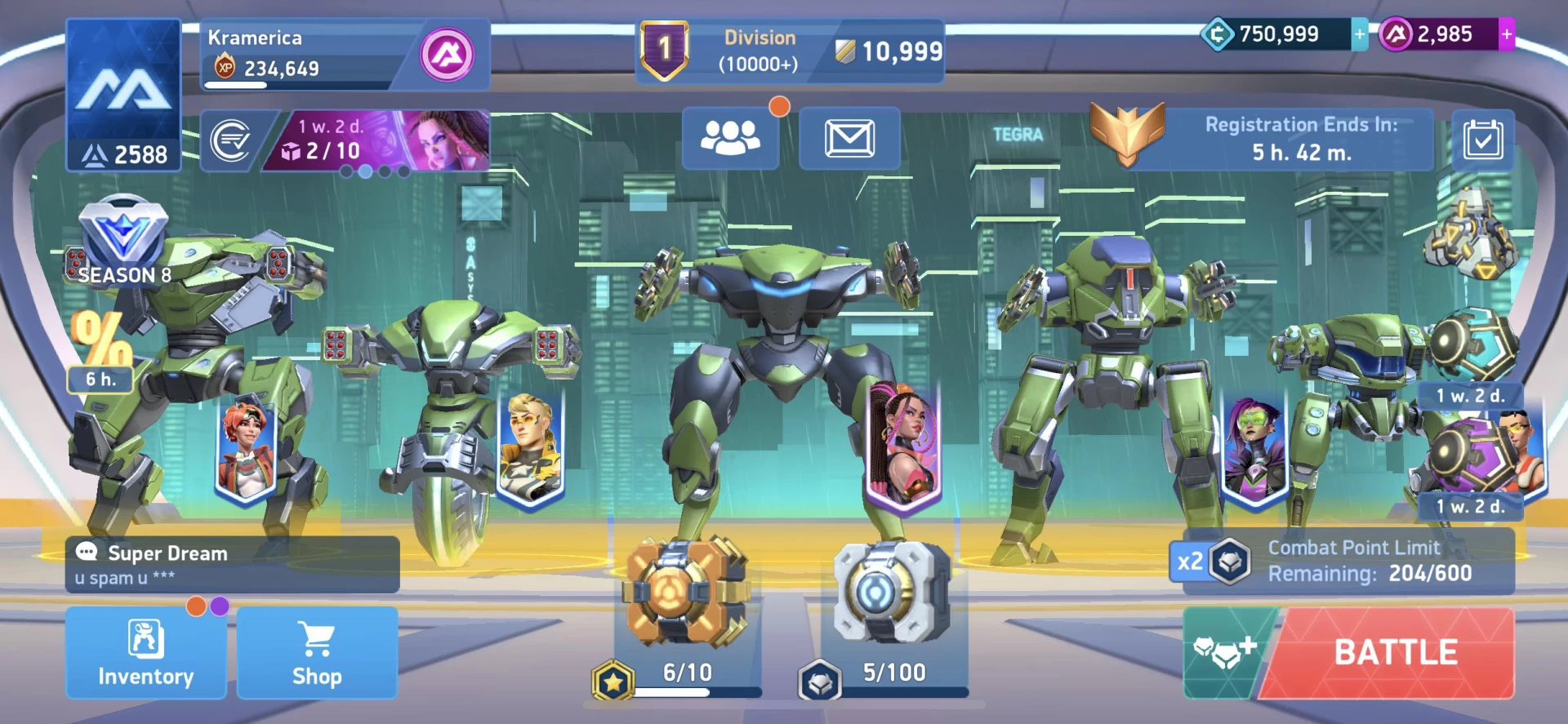 Успех в Mech Arena зависит не только от выбивания легендарного оружия и прокачки меха-роботов. Также нужно заботиться об ангаре, где собрана коллекция из 5 роботов, а также их обвеса. По сути, это ваш активный набор роботов и оружия. В каждом матче вы можете использовать этих мехов одного за другим — один уничтожен, другой вступает в бой. Но если в ангаре есть только мехи с дальним боем, вам будет сложно захватывать маяки в режиме «контроль за точку». Если у вас в отряде только агрессивные бойцы, то не будет хватать стабильного урона и выживаемости.