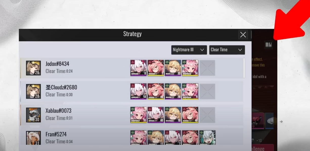 Если вы хотите узнать, какие конкретно команды можно собрать из этих и других персонажей, загляните на сайт Prydwen. Но даже если вы не доверяете этому сайту, можно использовать более простой метод: нажмите на иконку книжки в правом верхнем углу и вы увидите, какие команды закрыли ДокиДоки на разных сложностях и с разными условиями: например, самое быстрое время это 24 секунды, причём в отряде нет одного персонажа.