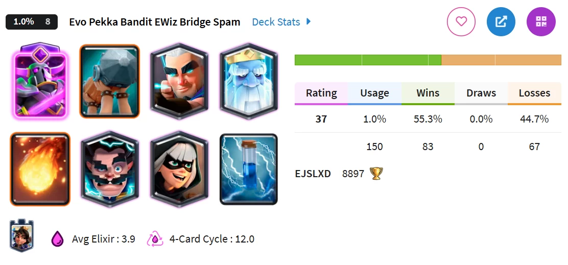Объяснил механику игры за колоду «Бриджспам» в Clash Royale и показал топовые варианты колод с этим архетипом.