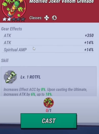 Лучшая пушка для этого героя — модифицированная граната Джокера (Modifier Joker Venom Grenade). Это оружие повышает атаку Рэйвен и Spiritual AMP, повышая область и силу лечения. Более того, когда она активирует ультимейт, её атака увеличивается на 6% и стакается до 18%.
