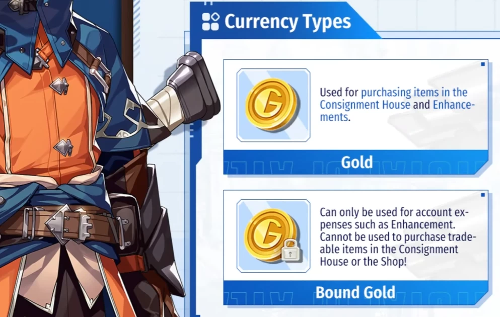 В Crystal of Atlan основной валютой является золото, которое разделено на 2 типа: привязанное и непривязанное. Они работают одинаково, но с оговоркой — непривязанное золото можно продать другим игрокам в Доме Консигнации (Consignment House), тогда как привязанное золото нельзя продать другим игрокам. При этом, если вы хотите передать золото между персонажами на одном аккаунте, это можно сделать с двумя типами золота — никаких ограничений в этом плане нет.