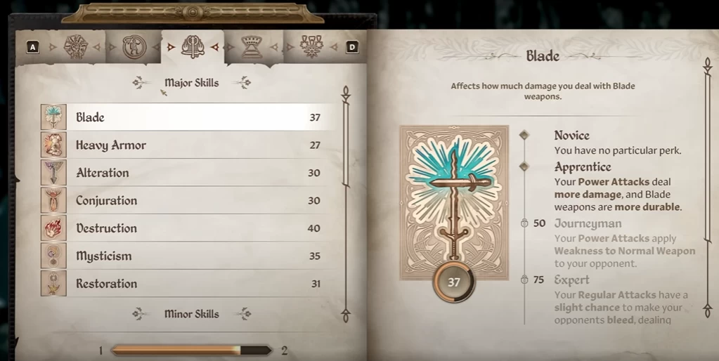 - Порог навыка не учитывается: Если у вас навык клинка равен 37, а удача добавляет +20, то «за кулисами» игра видит его как 57. Однако вы не получите преимуществ перехода через пороговые значения (50, 75, 100) для разблокировки новых преимуществ мастерства (новичок, ученик, специалист, эксперт и мастер).