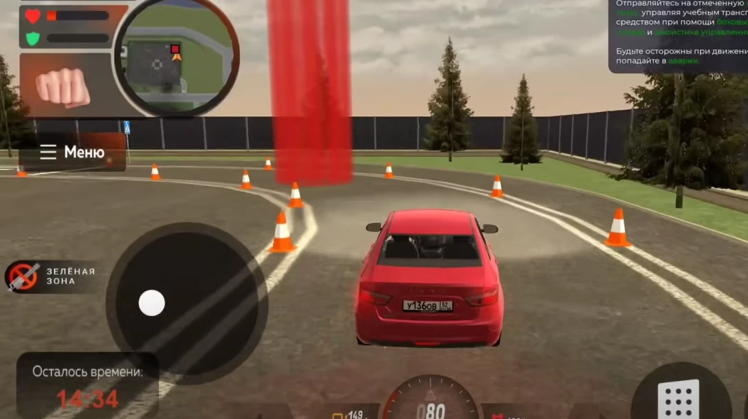 Вам предложат проехаться на выбранном транспорте — автобус, мотоцикл, легковушка или фура — по площадке на территории автошколы, а потом по городу. Важно проезжать красные столбы, включить фары, вовремя включать поворотники, останавливаться на красный свет и на знак «STOP». Максимальное число ошибок — 5. Некоторые игроки забивают на правила и едут как хотят, вписываясь в это ограничение по ошибкам.