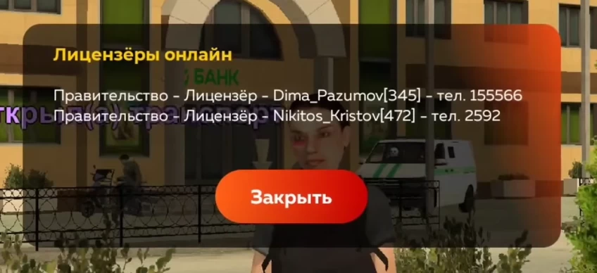 Более опытные игроки не проходят все эти тесты и практические части, покупая права у специальных людей — лицензёров. Они обычно находятся в правительстве. Чтобы получить список онлайн-лицензёров, введите в чате команду /liclist.