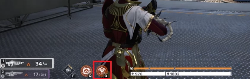 - Переключитесь на LMG и потратьте весь магазин. Прикол в том, что автоматическое пополнение магазина от Catalyst Band 01 работает и на второстепенном оружии. Главное — стрелять по красной сфере.