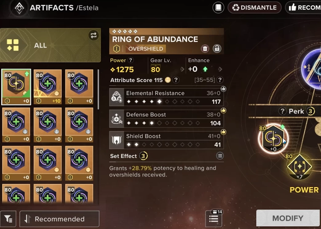 - Ring of Abundance — даёт +28,79% эффективности лечения и бонус к дополнительному щиту.