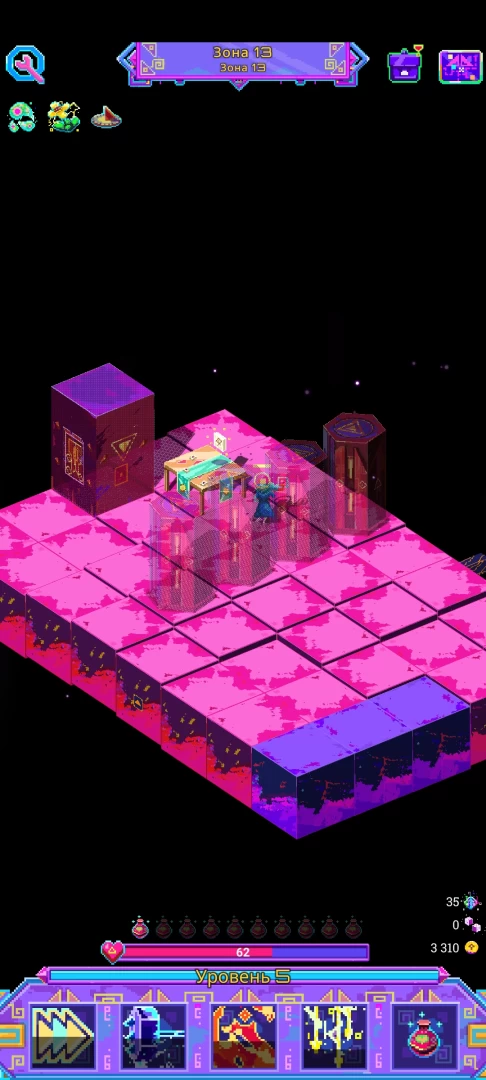 Не знаю как в PC-версии Neon Spellstorm, но в мобильной версии персонаж атакует автоматически и даже направляет свой взор автоматически. В таком случае игроку остаётся управлять передвижением с помощью виртуального джойстика и делать рывки одним тапом. К сожалению, персонаж часто делает то, чего ты не хочешь делать, поэтому битвы с большими волнами врагов превращаются в испытание на крепость и HP — как сильно ты прокачал этот навык и как много у тебя осталось склянок, которые автоматически активируются, когда HP падает до определённого значения.