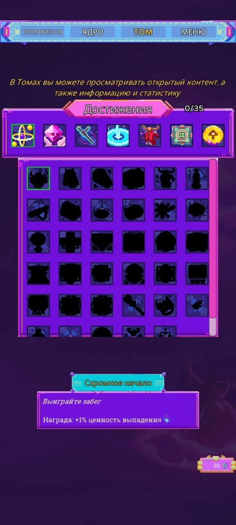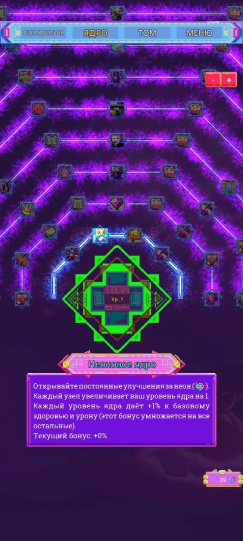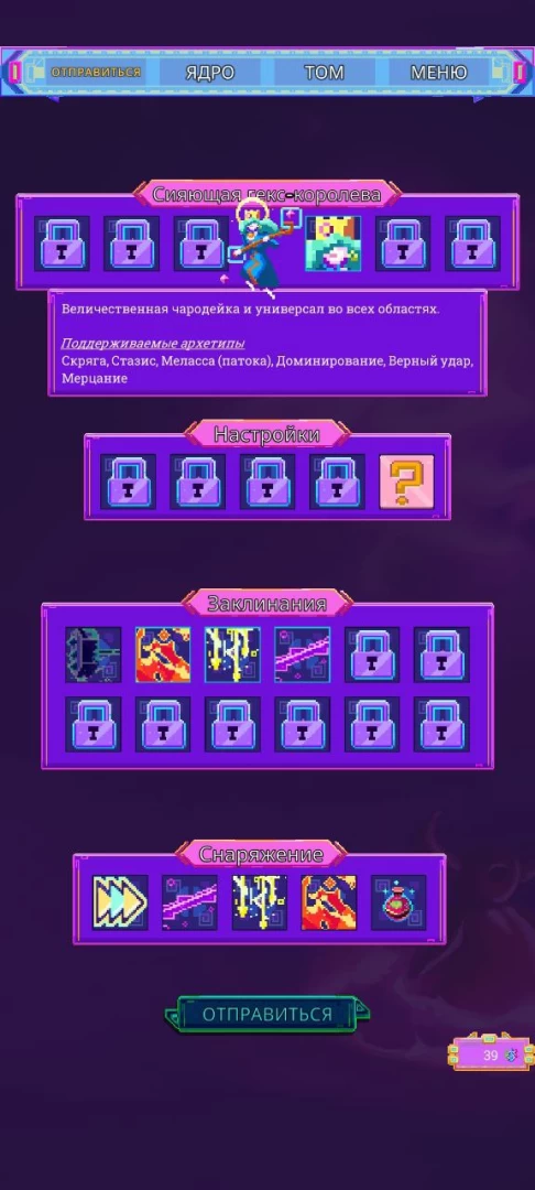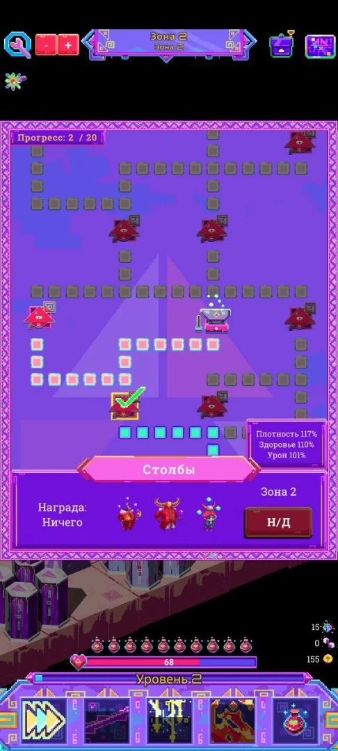 К слову об усилениях — если закончить этап (по своей воли или против неё), вы можете купить постоянные усиления. Приобретаются они за особую валюту, которую очень сложно достать. Как назло, после первого забега у меня было 39 штук такой валюты, а для самого дешёвого усиления их нужно 40. Такое ощущение, будто играешь в гачу и копишь на крутки, на которые постоянно не хватает.