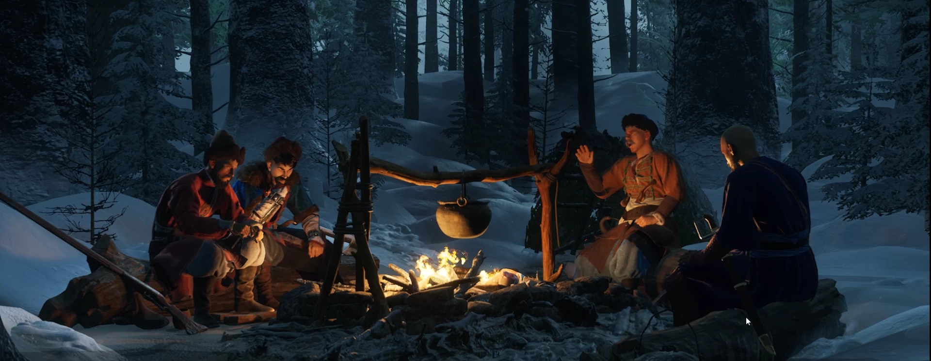 Теперь о самом геймплее — на старте нам показывают четырёх персонажей, один из которых и есть казак Кирша. Они сидят вокруг костра, готовят еду и слушают песню приятеля. Когда она закончилась, сидящий рядом с Киршей попросил его рассказать, что происходило во времена, «когда царя-батюшку выбирали». Причём Киршу называют атаманом, а значит это конец истории и нас перенесут в её начало.