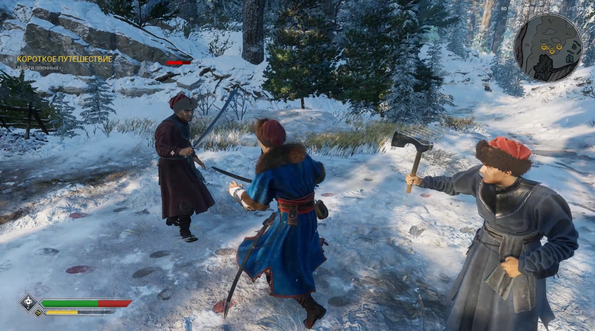 В первой обучающей миссии Кирша едет на лошади по лесу и натыкается на поляков, устроивших засаду. Как оказалось, не ему, а купцам. На первом поляке мы знакомимся с боевой системой — ЛКМ для лёгкой атаки, ПКМ для сильной, Пробел для уворота, Q для парирования, E для пинка и сбития блока, C для восстановления здоровья и Alt + ЛКМ или Alt + ПКМ — особые атаки с дебаффом.