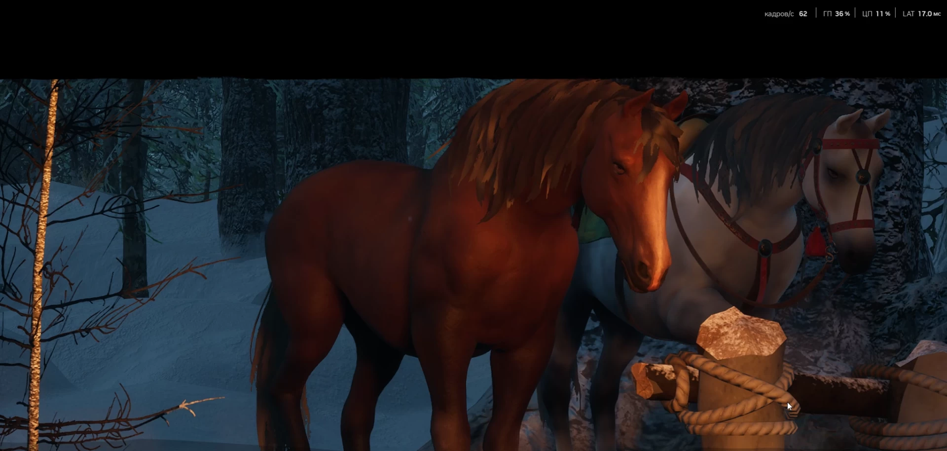 Ещё во вступлении я заметил, что некоторые крупные объекты по типу лошадей не успевают появиться или прорисоваться в кадре.