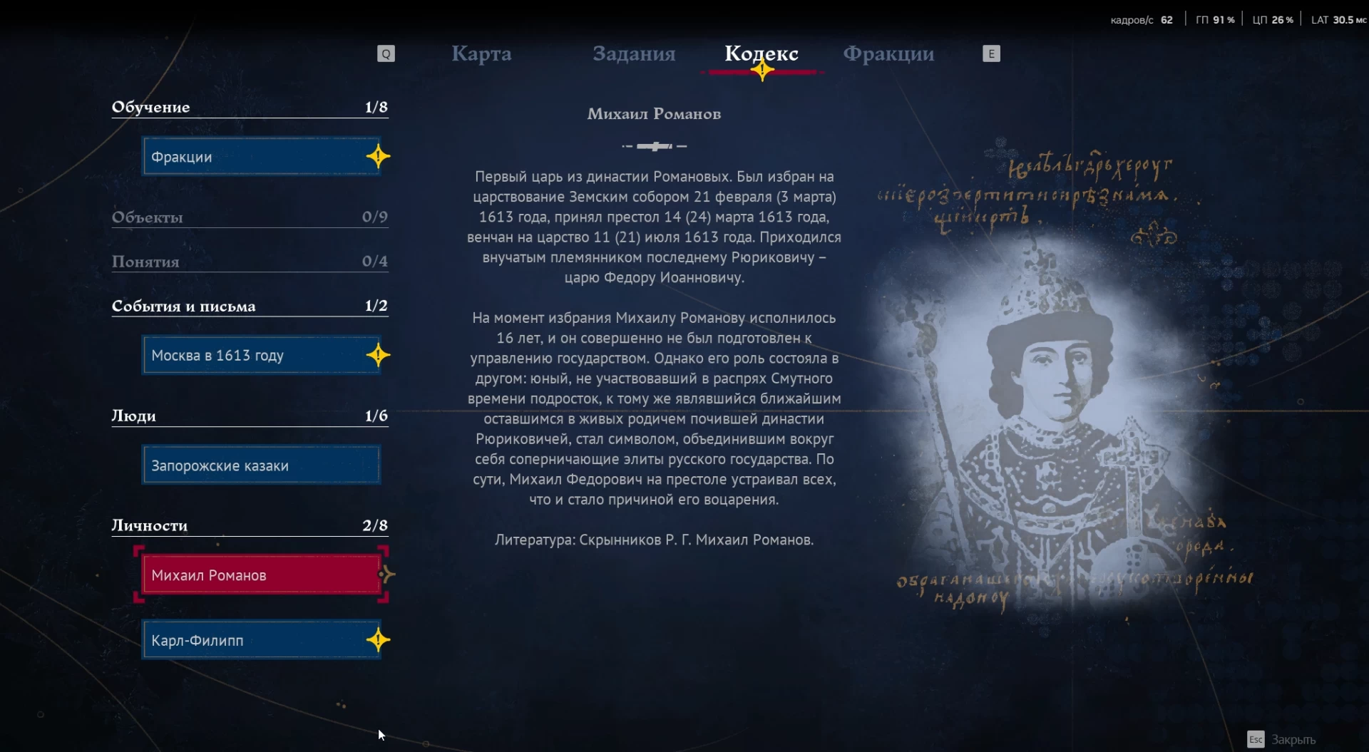 В Земском Соборе мы играем за казака Киршу. Радует, что в исторических записках не умалчивают того факта, что какое-то время казаки были на стороне поляков, а некоторые из них промышляли разбойничеством, но в итоге именно их отряды присоединились к ополченцам, чтобы на русском троне не сидели всякие «шляхи» и другие жадные до власти самозванцы.