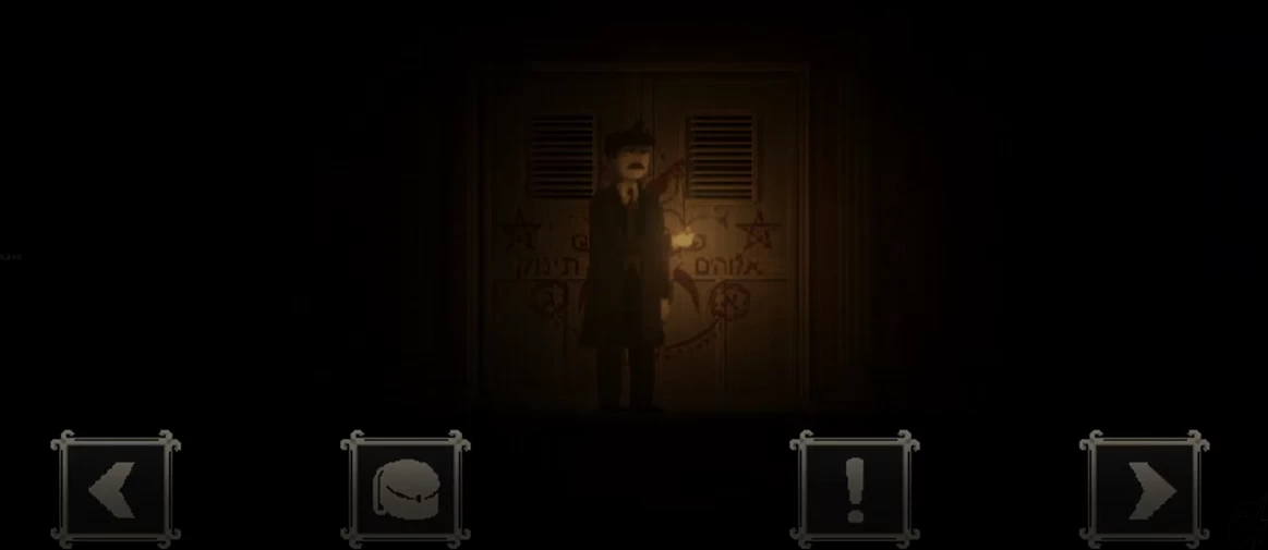 Внизу, в одной из тёмных комнат, возьмите дверную ручку. Она пригодится чуть дальше, для белой дверки возле тюремных камер. В комнате вас ждёт кукла. Вы услышите крик, поэтому возвращайтесь назад. Вам нужно положить эту куклу в детскую люльку. После этого вам передадут ключ от двери с кровавыми символами.