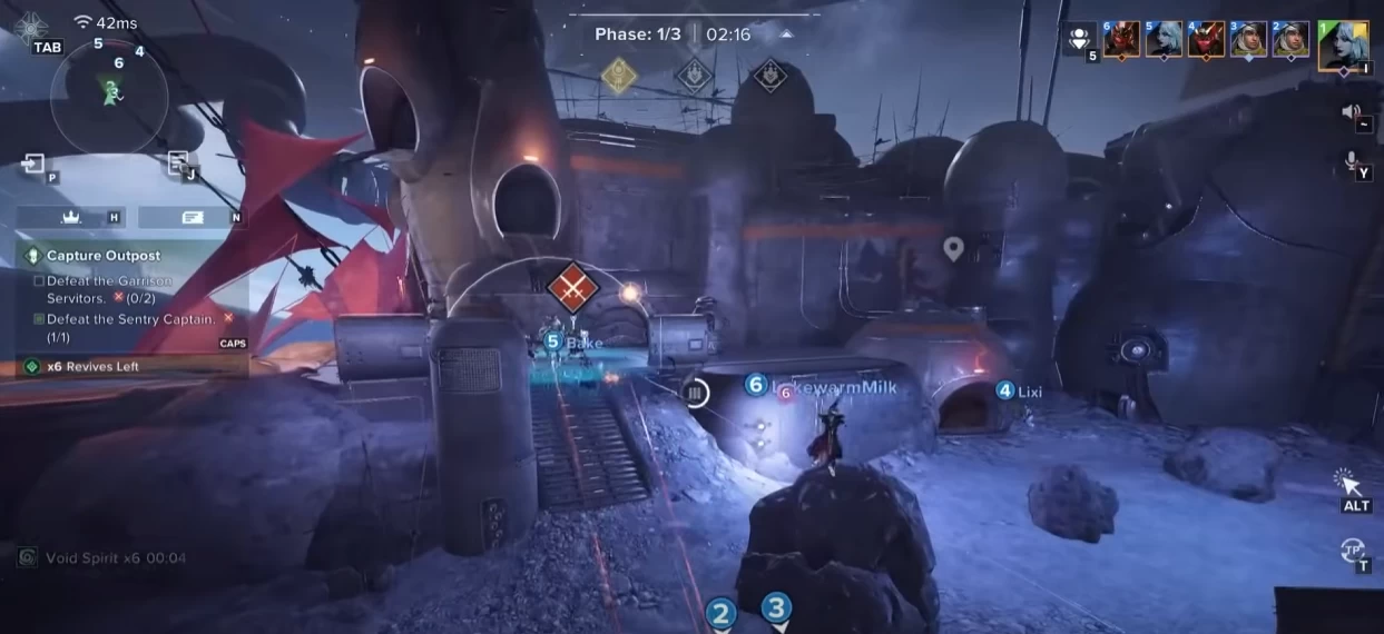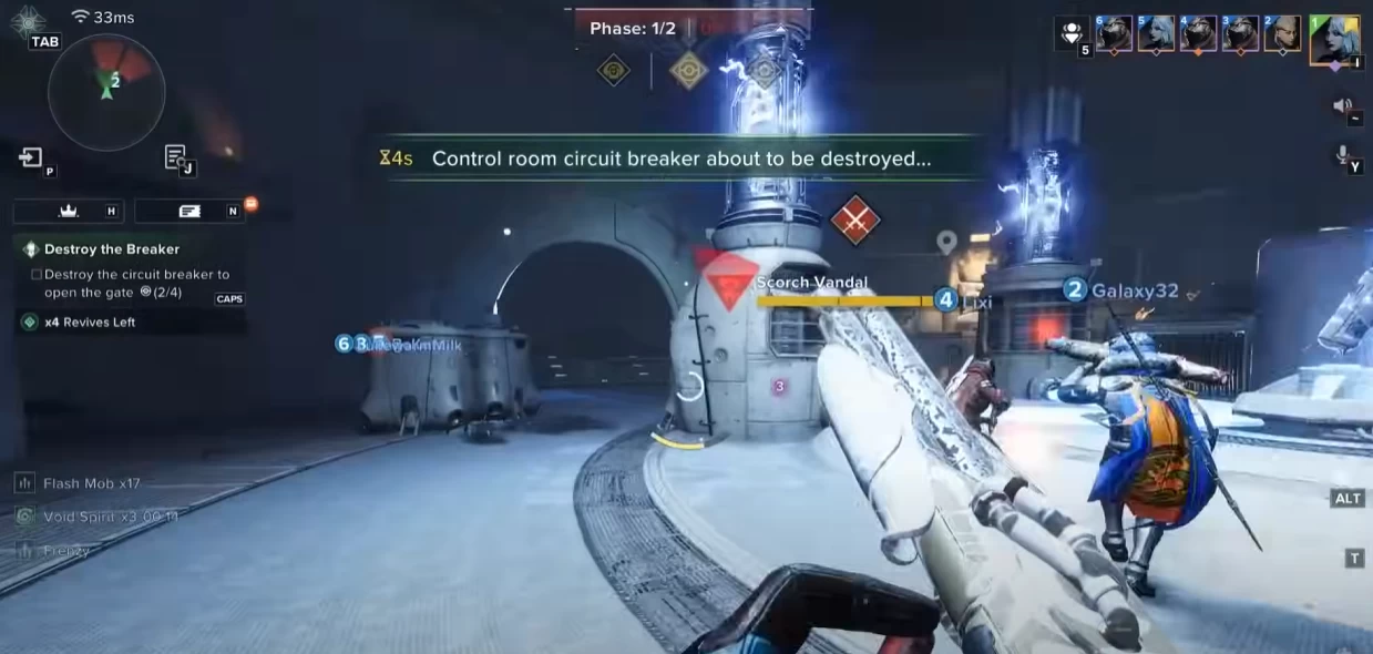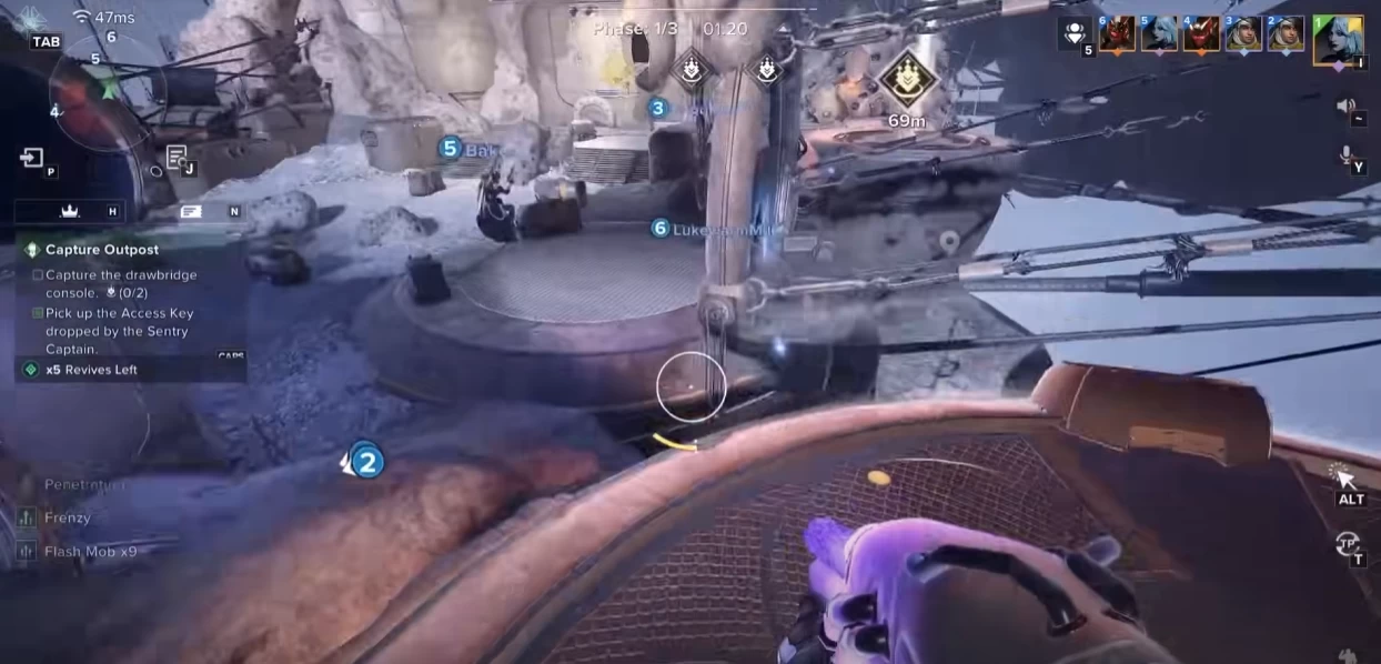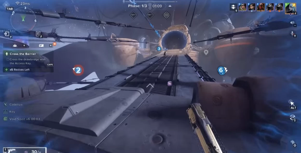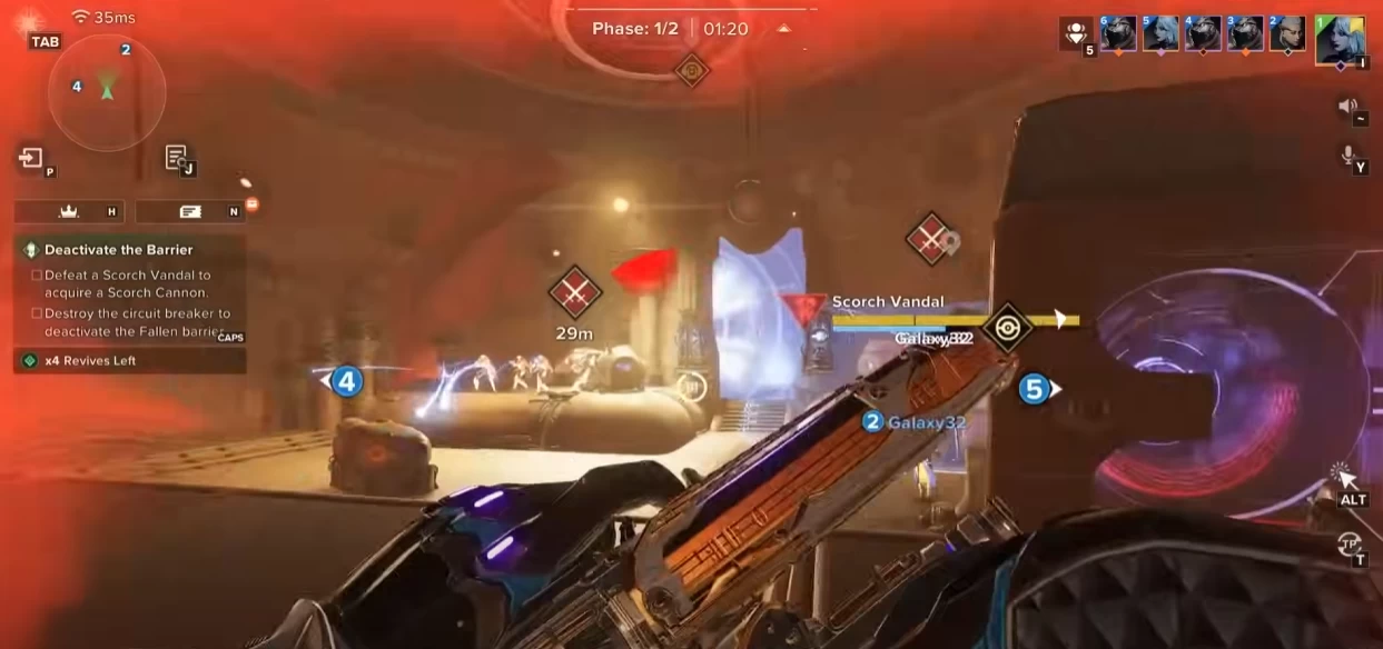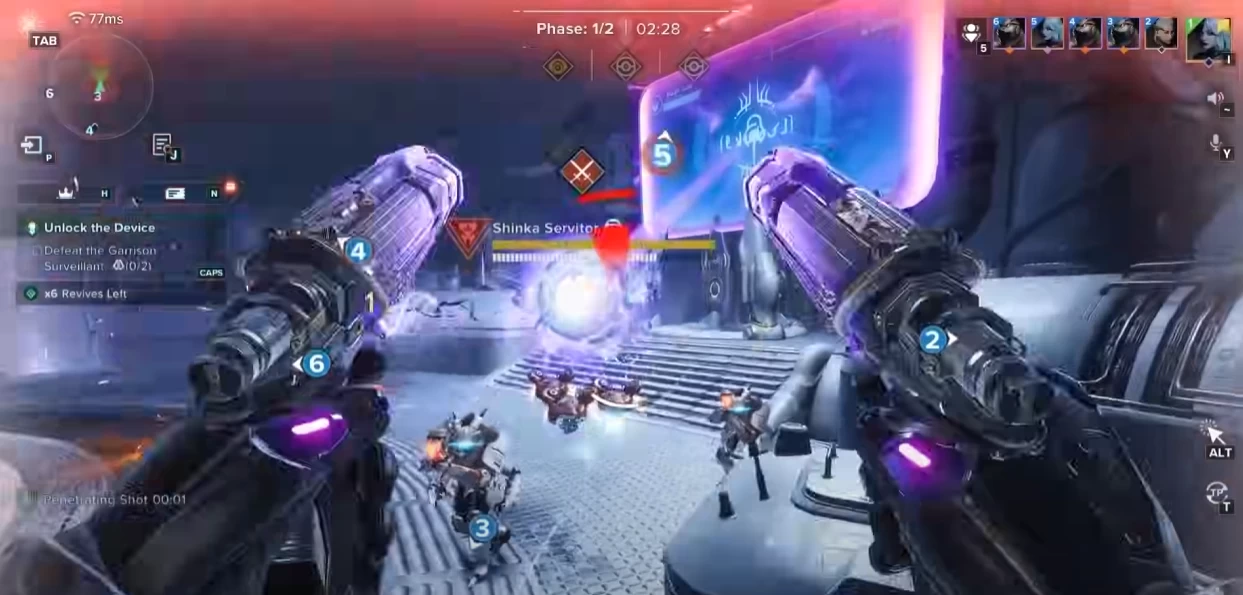 В это время 4 тиммейта, оставшиеся на большой арене, должны победить 2-х дронов-боссов, так как они блокируют 2 больших монитора с паролем. После победы над дронами используйте мелкие мониторы, чтобы ввести пароль.