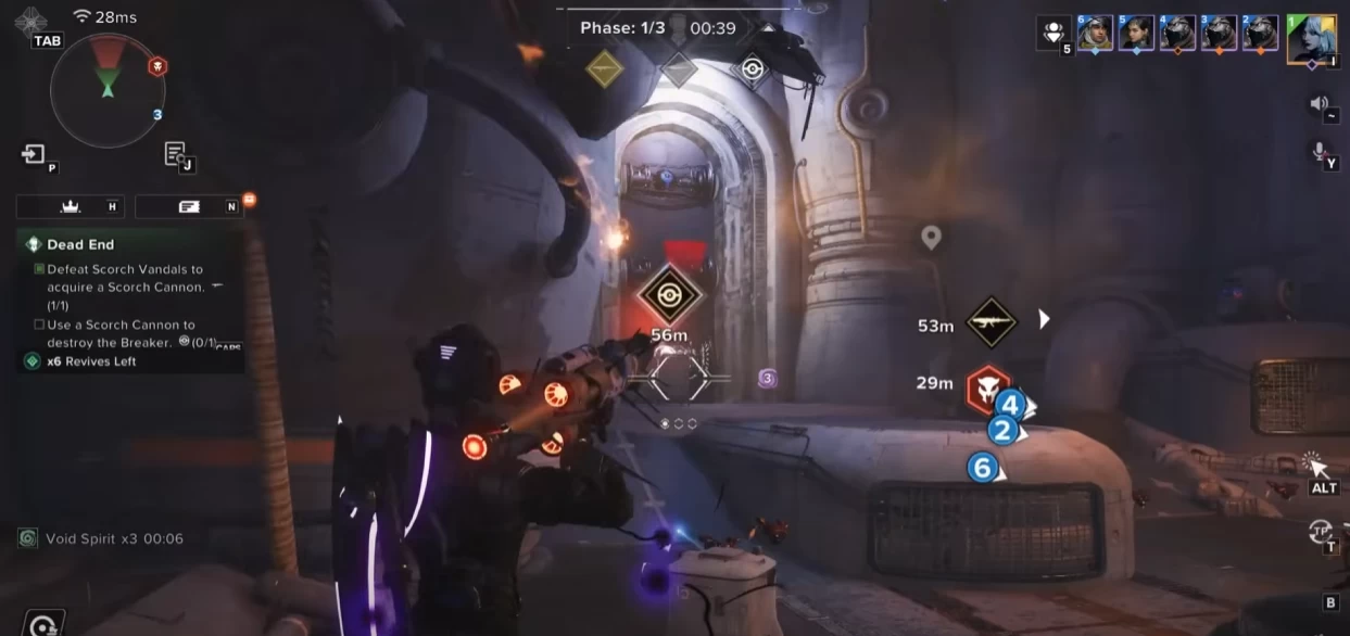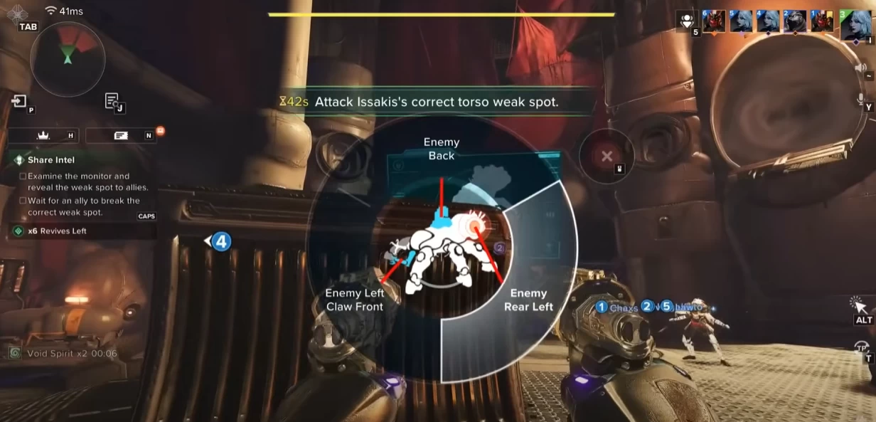 После этого у ваших тиммейтов в правом верхнем углу появятся иконки босса с указанием, в какую часть тела стрелять. Так что лучше использовать именно контекстное меню, а не кричать в голосовой чат. Также 2 тиммейтам, прошедшим через портал, важно знать, что они могут помочь друг другу, если один из них справится раньше времени.