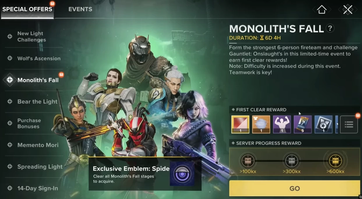 За прохождение всех трёх фаз рейда вы получите эксклюзивную эмблему, которую выдают за зачистку Monolith's Fall в первую неделю.
