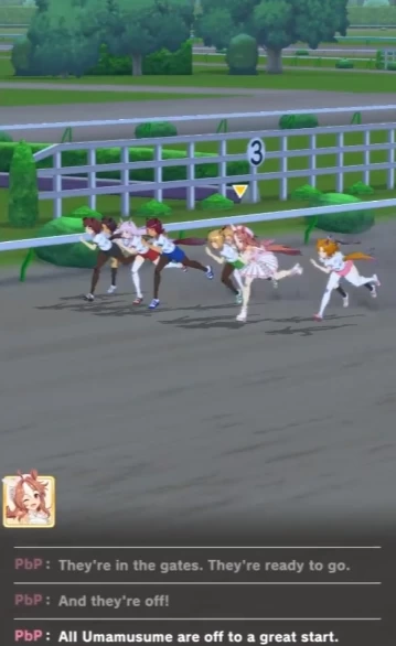 После хорошей тренировки вы отправляете своего персонажа на забег. Во время него вы ничего не можете делать, только смотреть и слушать комментаторов. На ваше место и шанс победы влияет то, насколько хорошо прокачана пони. Если вы хотите улучшить её, делайте упор на тренировках, а если хотите заработать больше ресурсов, то тогда участвуйте в забегах.