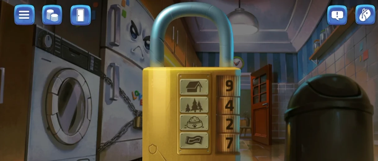 Если код не подходит, запоминайте рисунки на замке, идите к колесу с числовыми кодами и сверяйтесь с запиской. Например, «собака - 4», значит крутите колесо, чтобы напротив головы собаки была цифра 4. И смотрите, какая цифра в таком положении колеса находится напротив будки. Эту цифру вводим в замке. И так далее.
