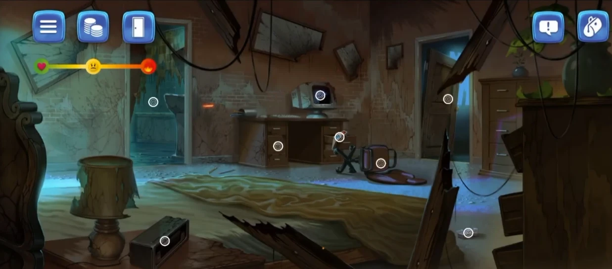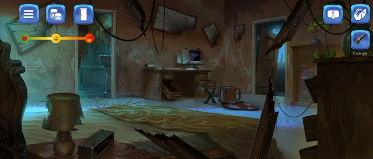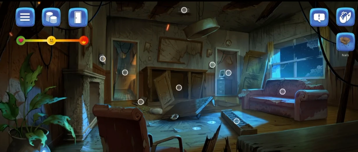 В первой комнате можно взаимодействовать с разными предметами, но нам пока нужны только гвозди на полу. Проходим в комнату справа, где стоит компьютер.