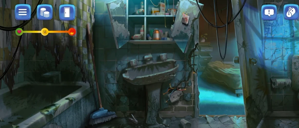 В ванной берём метлу, кусачки с пола, торчащие из розетки провода, банку с таблетками и рецепт врача.