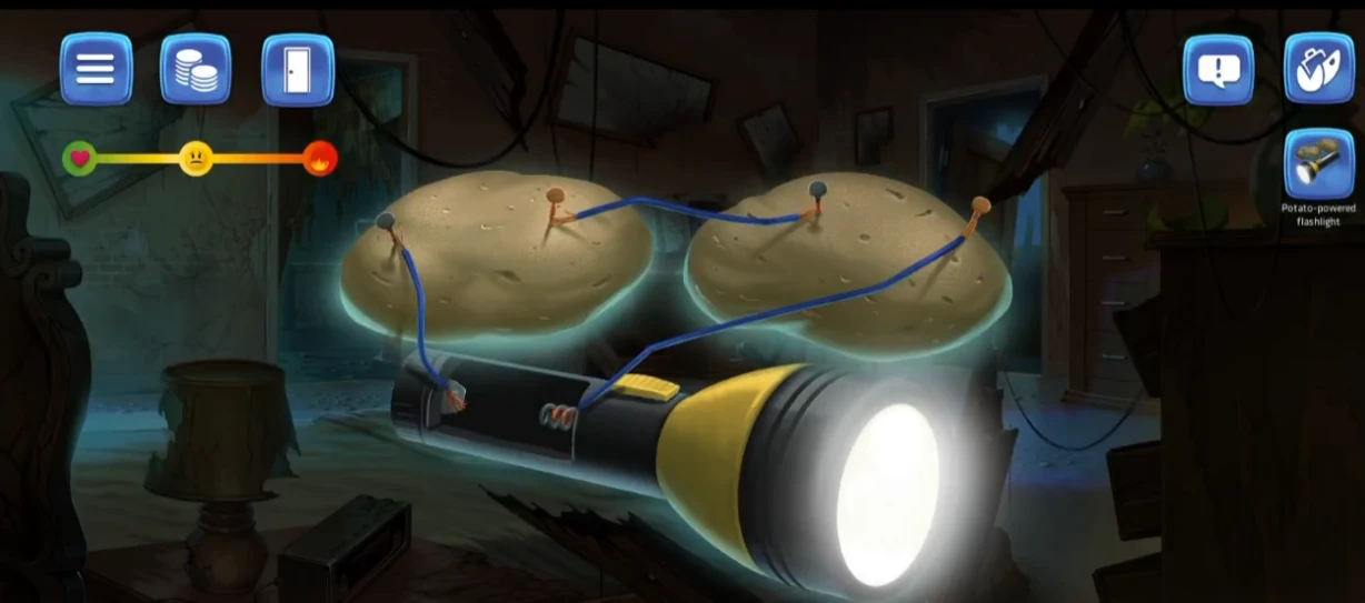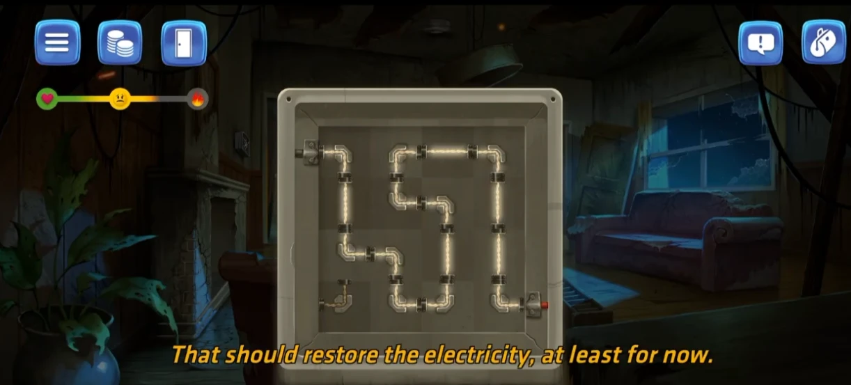 Используйте кусачки, чтобы открыть щиток с проводами на стене. Объедините их, чтобы подать электричество. Заберите из комнаты с компьютером настольные часы.