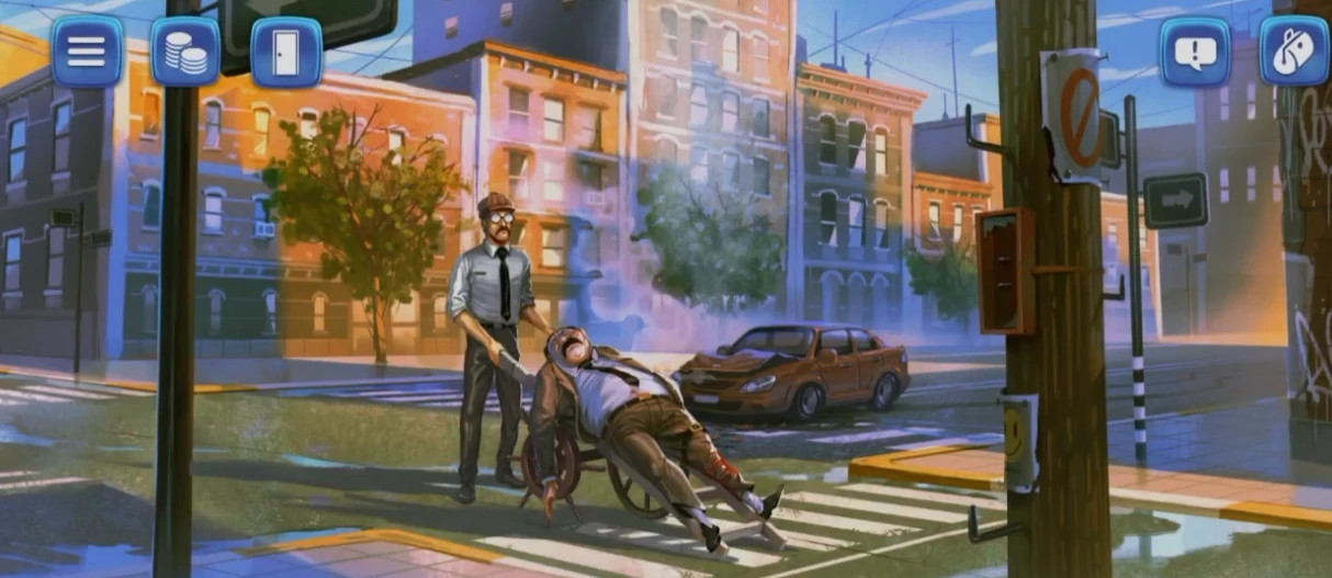 Вернитесь на место ДТП и уложите своего отца на носилки.