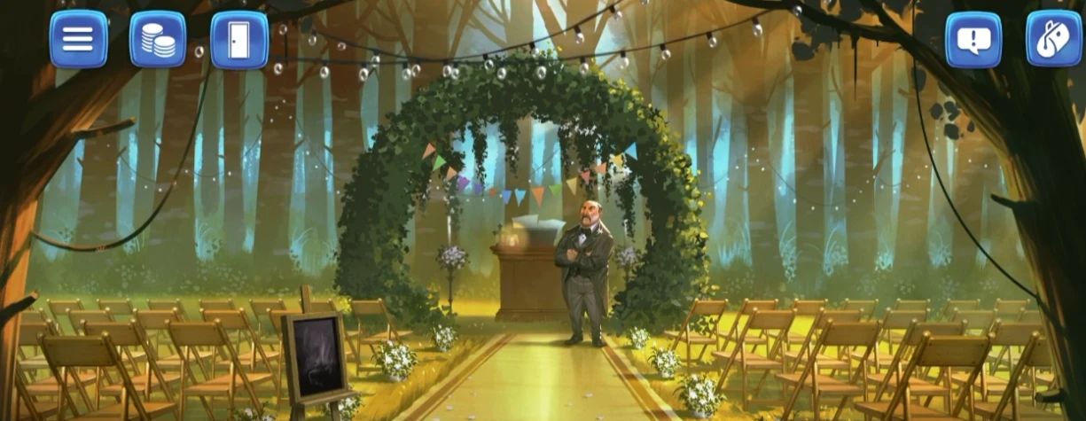 Проходите в правую дверь на свадьбу. Возьмите мелок у доски и колесо справа.