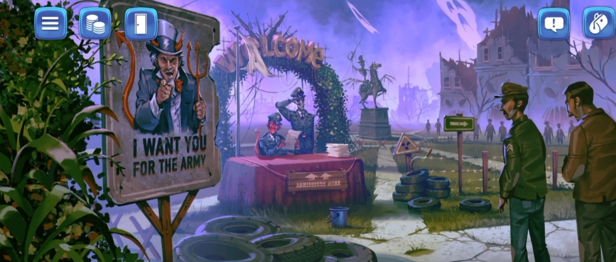 Отправляйтесь к военному, который перестреливается с врагом. Заберите красное ведро и доску