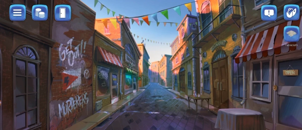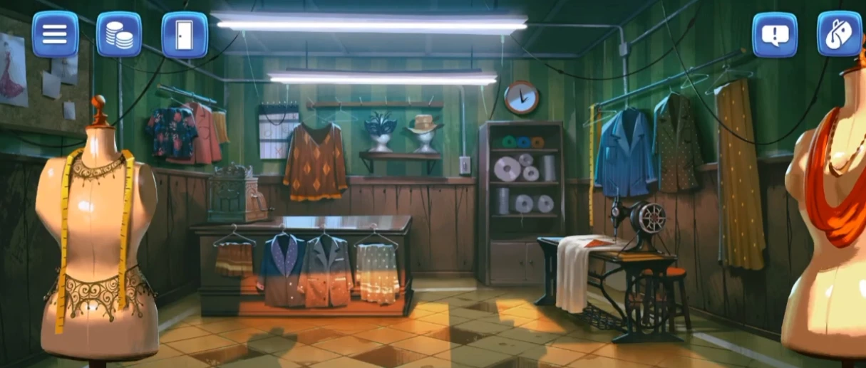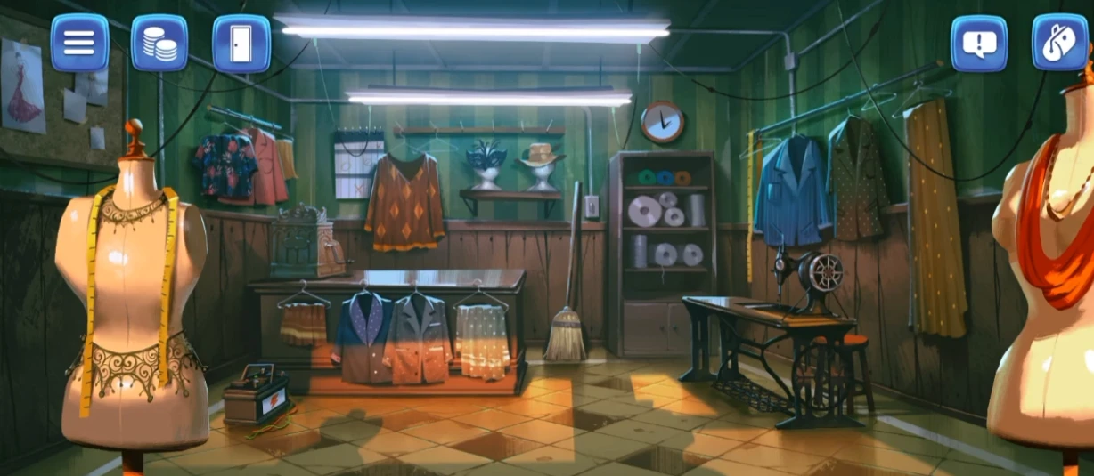 В ателье заберите метлу и аккумулятор. Положите скатерть рядом со швейной машинкой.