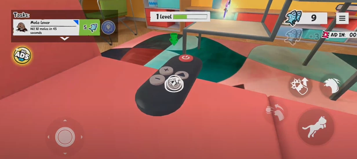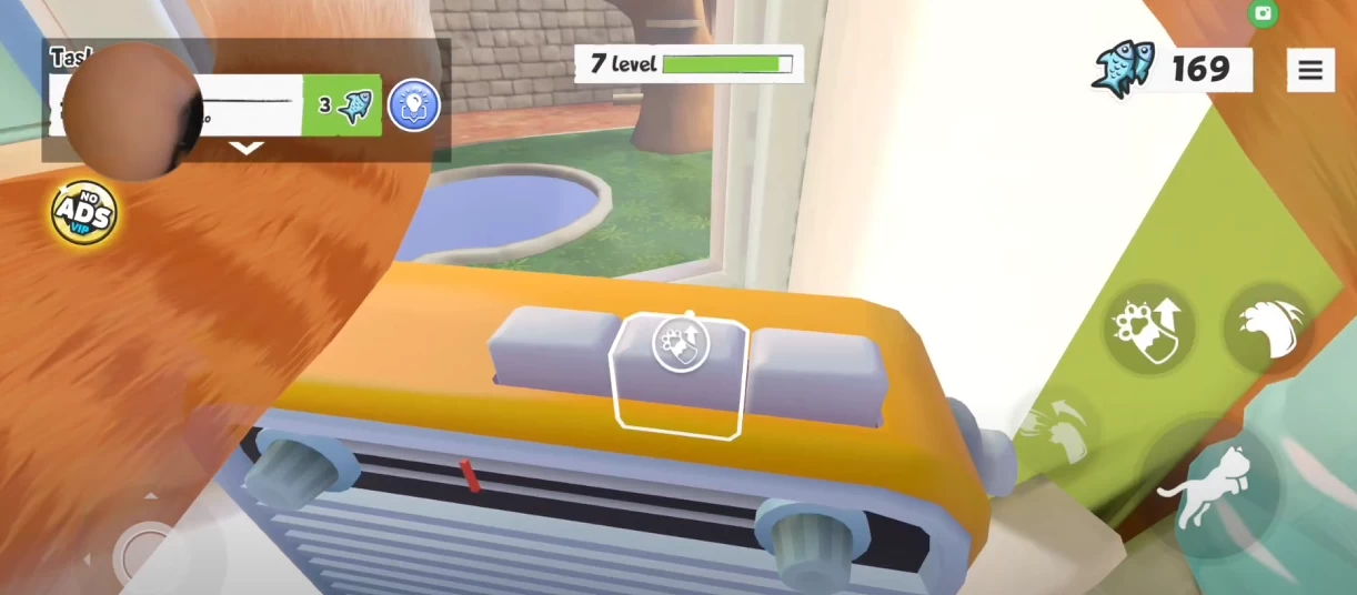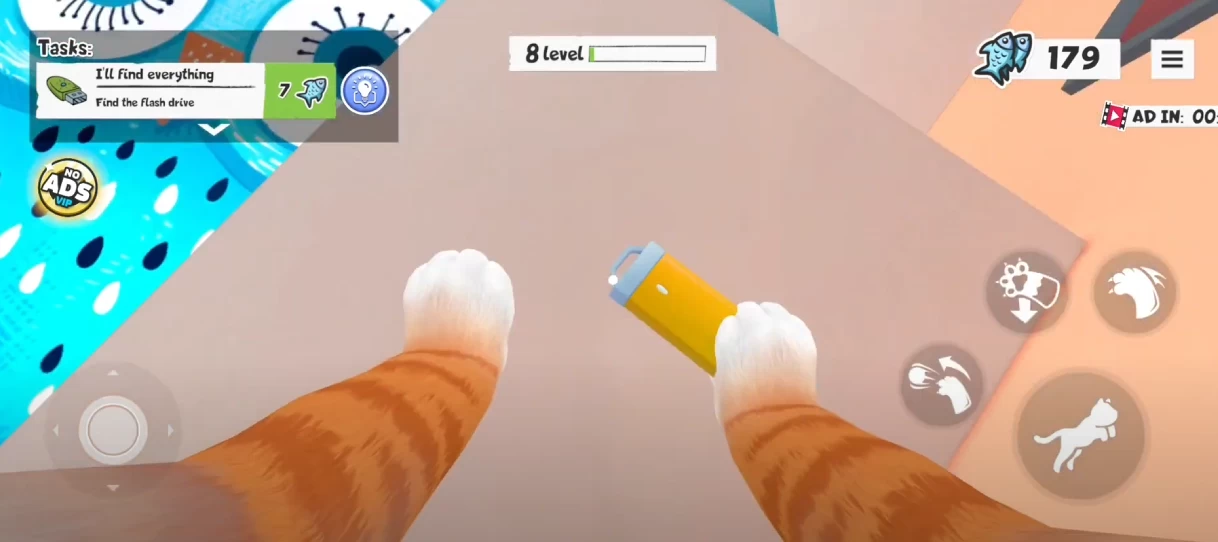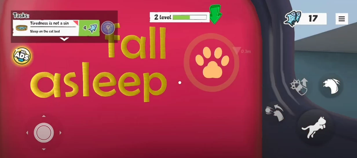 Пятое задание — поспать на кошачьем спальном месте. Оно находится на первом этаже.