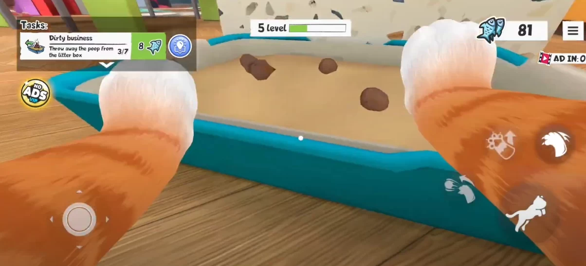 Ещё одно задание связано с кошачьим лотком — вам нужно достать из него и раскидать 7 какашек.