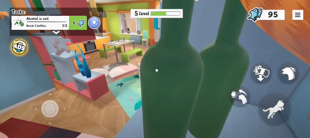После серии погромов в доме, настало время спасти рыбку — заберите её на кухне и верните в аквариум.