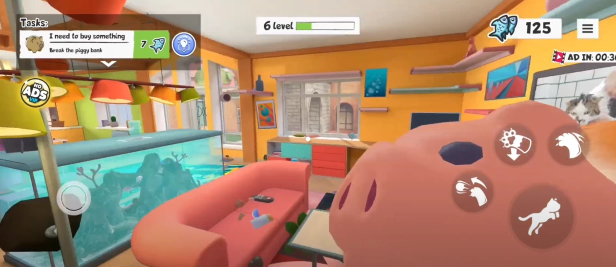 Делать хорошие дела это прикольно, но куда лучше помогать своей будущей кошачьей банде. Для этого возьмите копилку с полки и разбейте её.