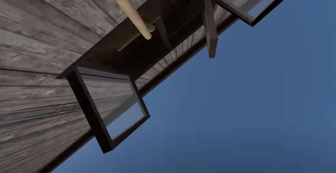 Идём к заброшенному дому. Берём с него кусачки и перерезаем забор. На пне возьмите гаечный ключ, а в чёрном щитке — переключатель. Дальше идём к домику рыбака и подбираем с земли деревянную лестницу. Ставим её к стене, забираемся на крышу и попадаем внутрь дома, где забираем чёрный переключатель.
