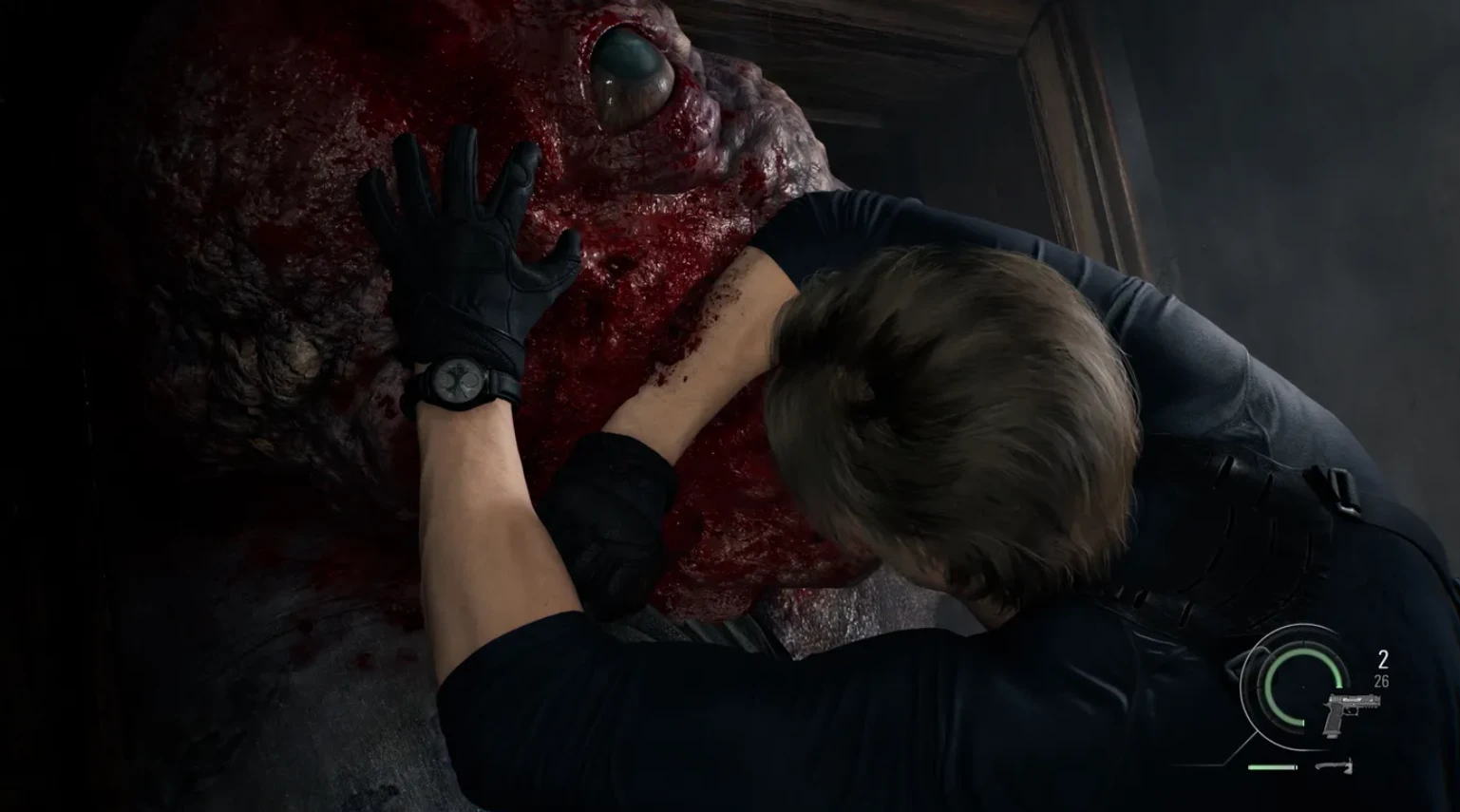 Геймплей за Леона более экшен-ориентированный. Помимо отточенных навыков стрельбы этот персонаж хорош в ближнем бою, поэтому игроки часто будут лицезреть смачные добивания. Ещё они смогут убить пачку зомби одним взмахом бензопилой.
