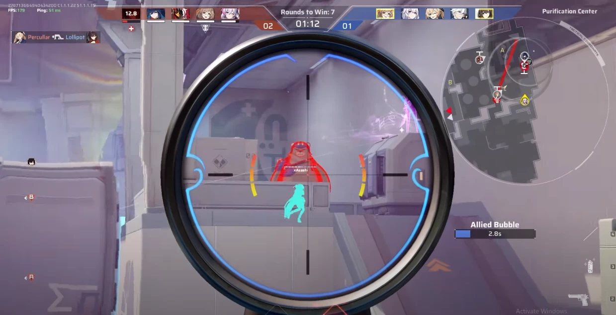 Вместо агрессивного стиля важно использовать 2 сильных стороны снайпера: дальность стрельбы и высокий урон. Поэтому выбирайте удобное место, откуда будете контролировать целые локации, не давая врагу пройти незамеченным. Дело в том, что у снайперов в Strinova самый высокий «TTK» — время до убийства противника. Если вы попадёте врагу в голову, то не просто собьёте его, а сразу убьёте.