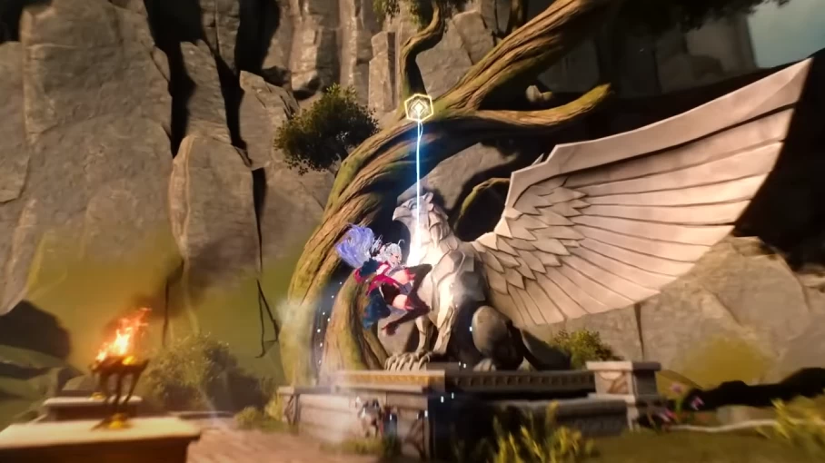 Предмет ждёт нас над кроной большого дерева. Сначала взлетите, чтобы попасть внутрь листьев, после чего притянитесь к шкатулке.