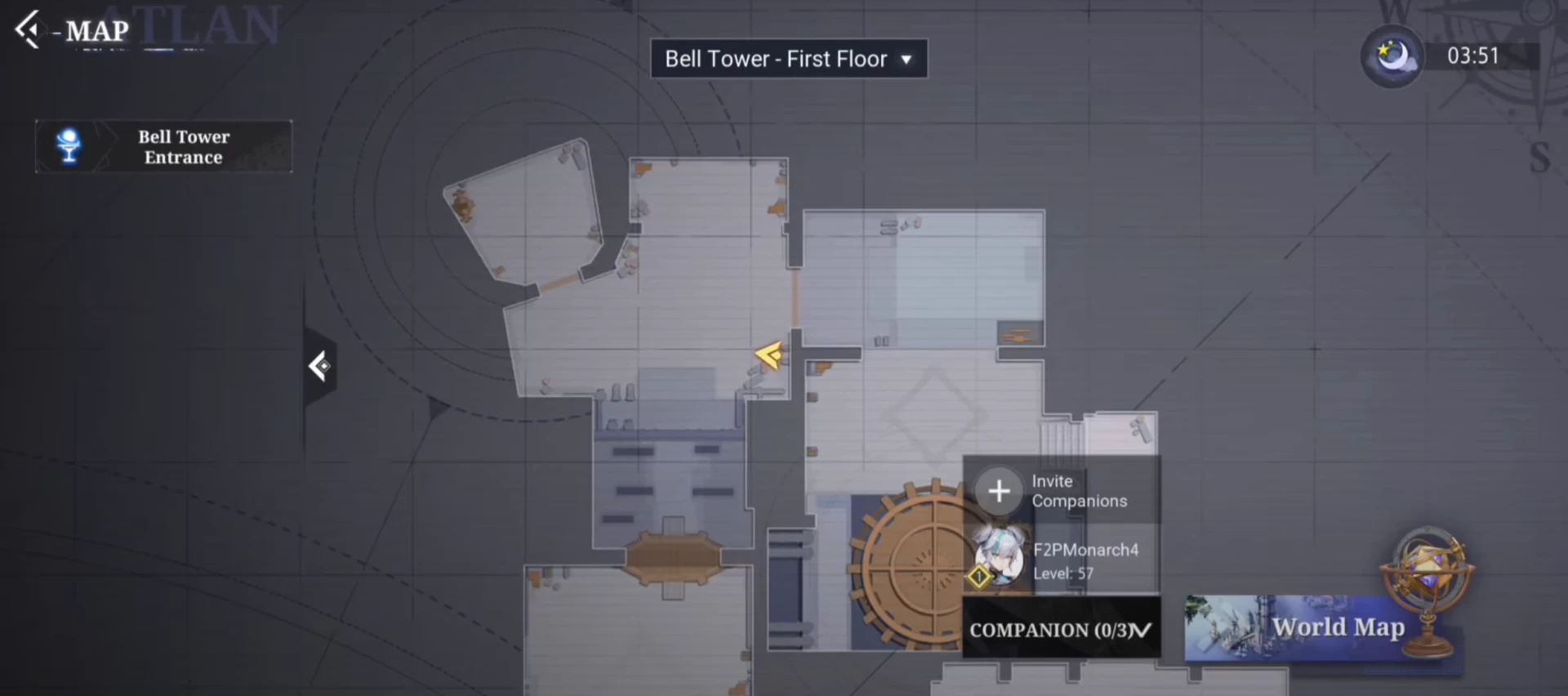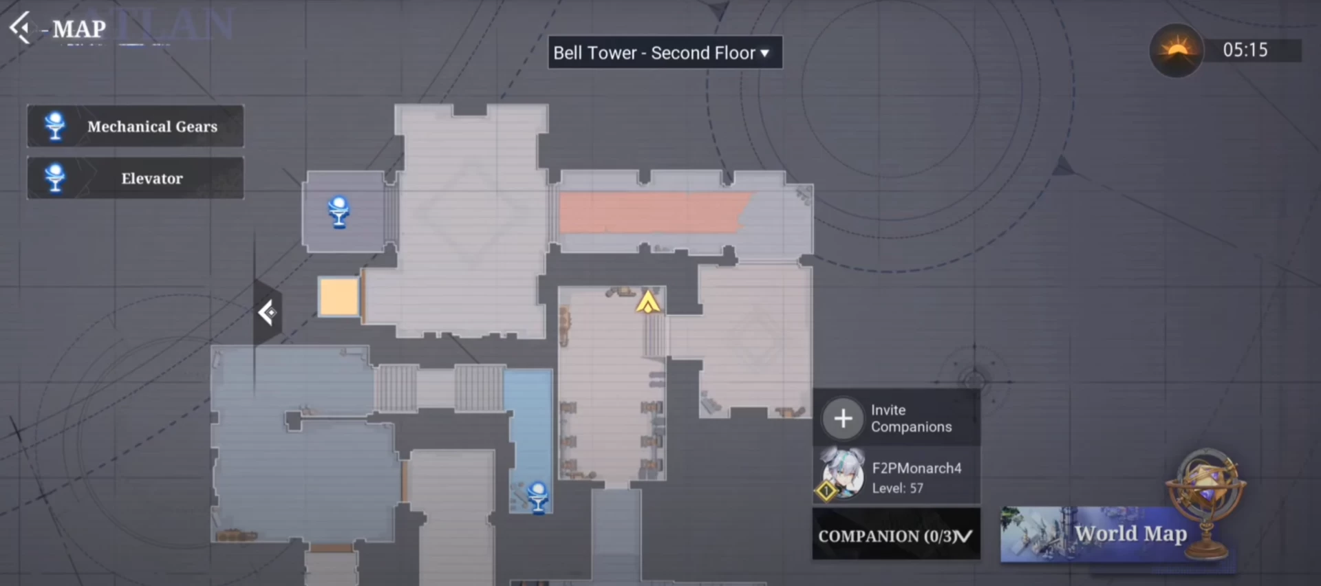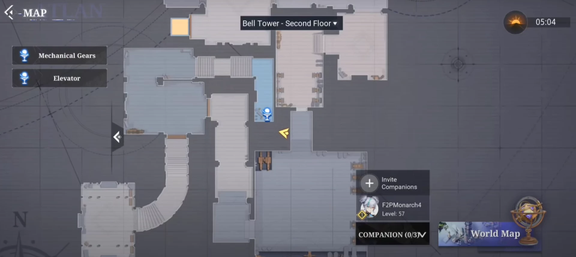 После входа в Bell Tower на первом этаже встаньте напротив механизма с шестерёнками. Наведите объектив на него.