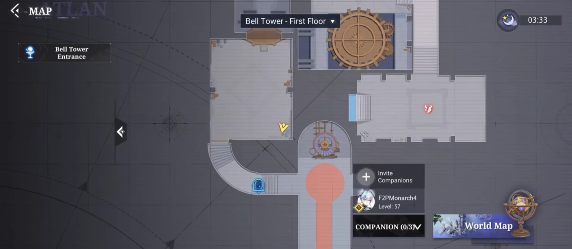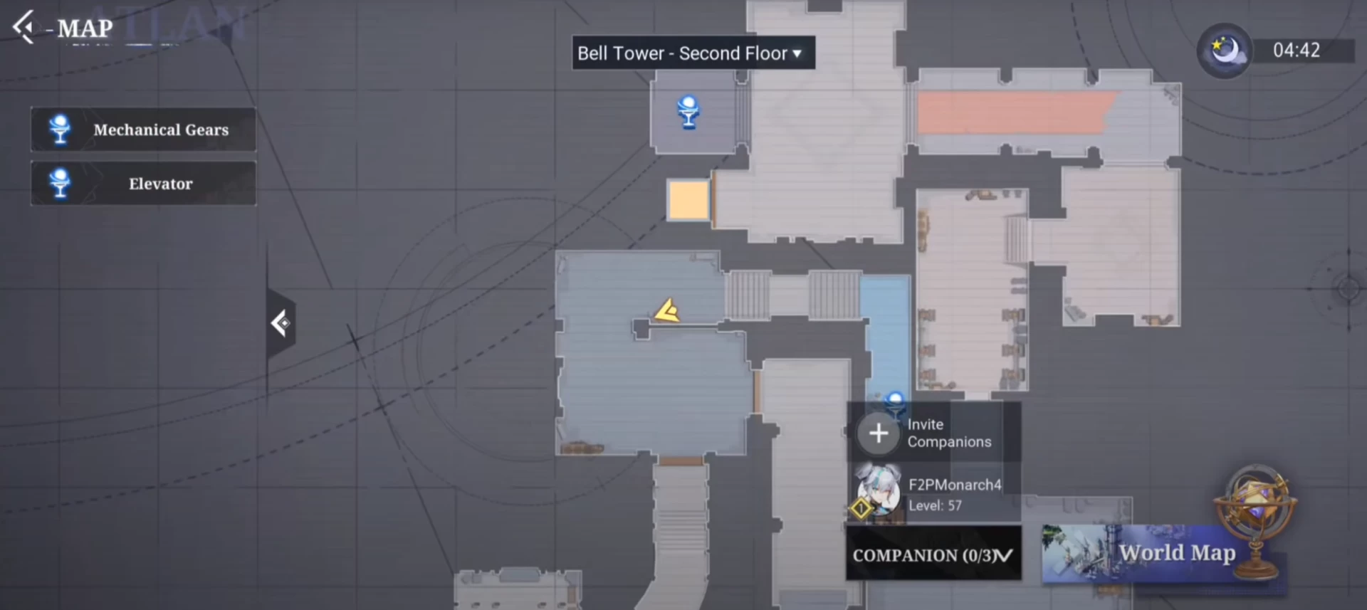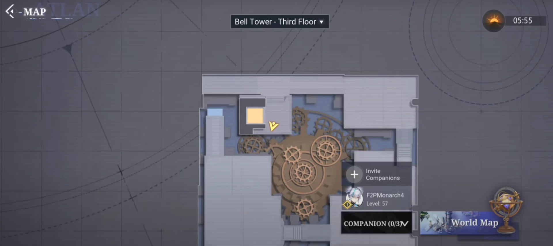 После входа в Bell Tower на первом этаже встаньте напротив механизма с шестерёнками. Наведите объектив на него.