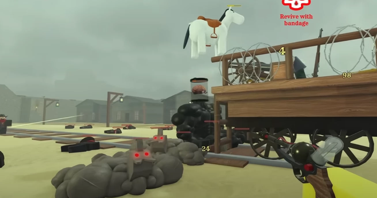- Пулемёт и пушка — установите пулемёт Максима и пушку из Форта Конституция на поезд.