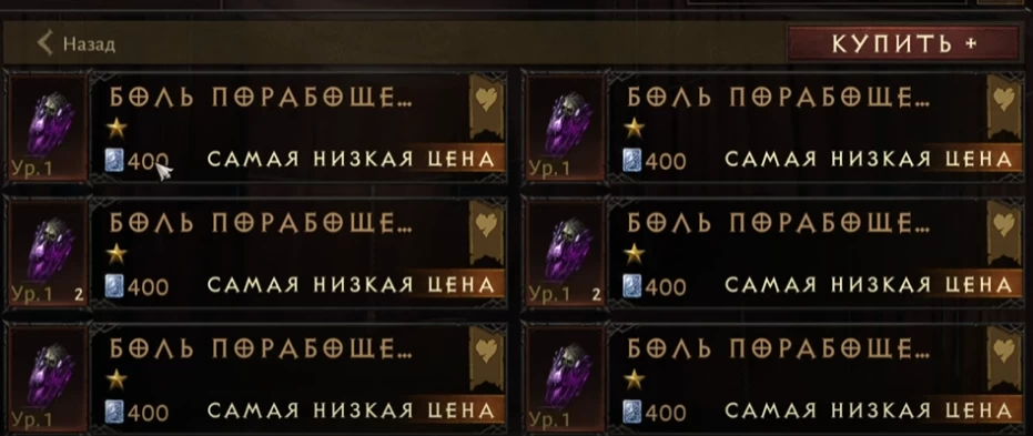 Торговля на аукционе — продавать можно предметы, не привязанные к аккаунту. В углу таких айтемов будет иконка весов. Также стоит учитывать, что если вы непривязанный предмет вставляете в экипировку — легендарные и обычные камни, а также руны — то они становятся привязанными, и больше на аукционе их не продать. Рекомендую продавать легендарные самоцветы, а обычные не трогать — это один из самых важных ресурсов в игре, который усиливает вашего персонажа и повышает второстепенные характеристики: броня, пробитие брони, мощь и сопротивление. Это ключевые статы для PvE и PvP. В среднем самая низкая цена за 1-звёздочный легендарный самоцвет — 400 платины. 5-звёздочные самоцветы будут продаваться минимум за 12 800 платины, но в реальности самая низкая цена за них составляет 20 000 платины. Получается, чем больше звёзд у самоцвета, тем больше на него будет базовая минимальная цена.