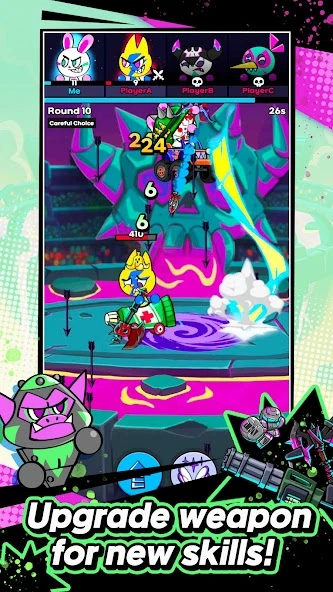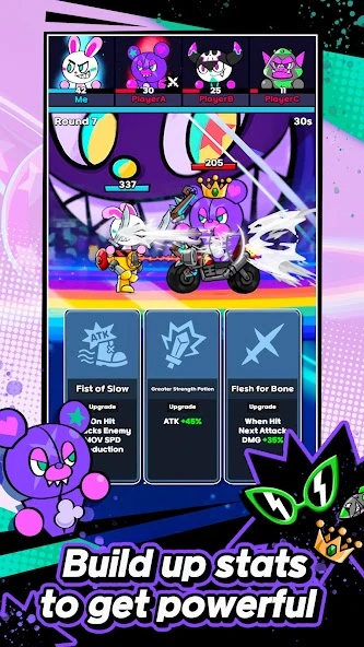 В плане геймплея это казуальный PvP-экшен. Игроки выбирают бойца на разных средствах передвижения — от мотоциклов до джамперов. Персонажи автоматически сражаются на арене, используя в качестве оружия мечи, боксёрские перчатки или лук со стрелами. На матчмейкинг уходит около 10 секунд, причём на арене могут биться 4 врага — побеждаете одного, выбираете 1 из 6 усилений и переходите в следующий раунд.