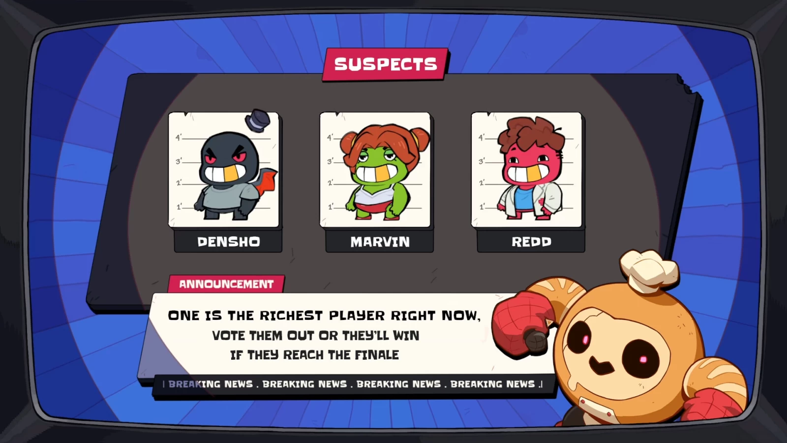 На этой странице собрана вся доступная нам информация о Eat the Rich. Выход игры Android, IOS, Xbox Series S/X, PlayStation 5 намечен на 2025, PC состоялся 10 сентября 2025. Игру можно отнести к таким жанрам как: игры с мультиплеером, кооперативные игры, приключения, экшены, мультяшные игры. Также на этой странице вы найдете описание Eat the Rich, даты выхода на все платформы, её трейлеры, отзывы пользователей, последние новости, статьи и обзоры, оценки посетителей и редакции.