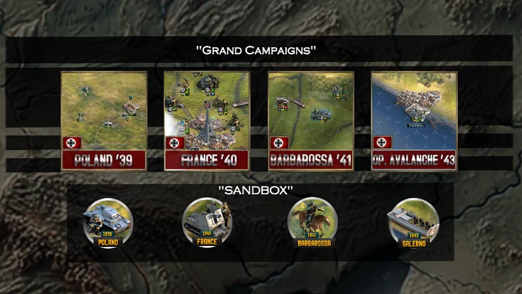 В Frontline: Blitzkrieg '39 доступны 4 кампании: операция «Вайс» (Польша), операция «Гельб» (Франция), операция «Барбаросса» (СССР) и операция «Аваланч» (Италия). Игроки могут выбрать исторические сценарии или строить армию Германии с нуля до бесконечной реиграбельности. Всего в игре доступно 200+ уникальных юнитов с расширенными опциями для полной свободы.