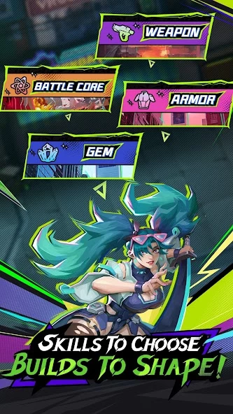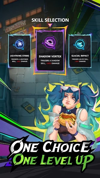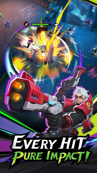 В этом проекте вы управляете персонажем одним пальцем, так как он автоматически сражается с разными роботами и другими врагами на тёмных улицах неонового города. Разработчики обещают, что все матчи уникальны благодаря элементам из рогаликов. Также по мере прокачки вы сможете выбирать 1 из 3 случайных усилений.